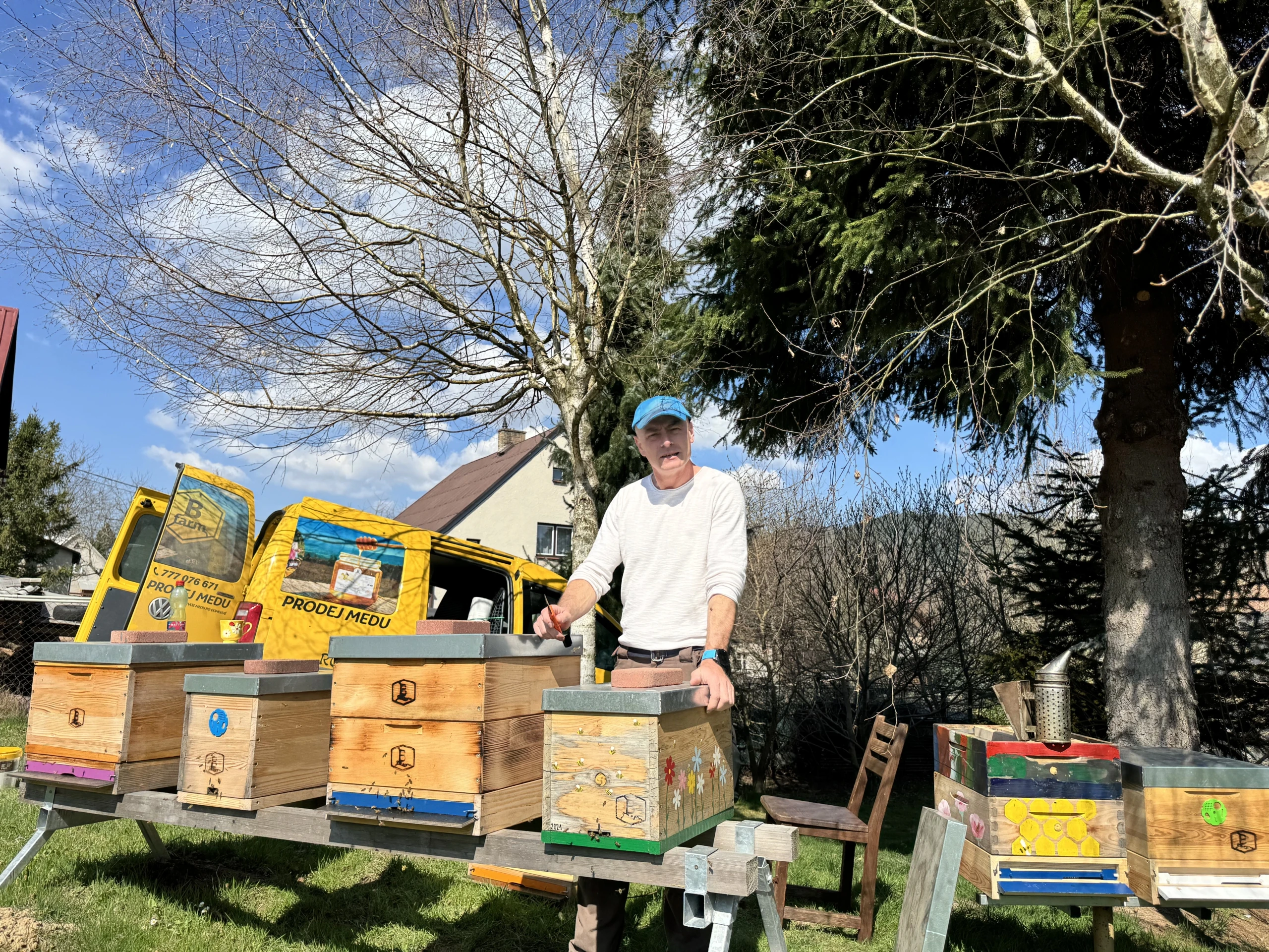 5 rámkové, hustě obsednuté včelami, se značenou mladou výběrovou matkou.