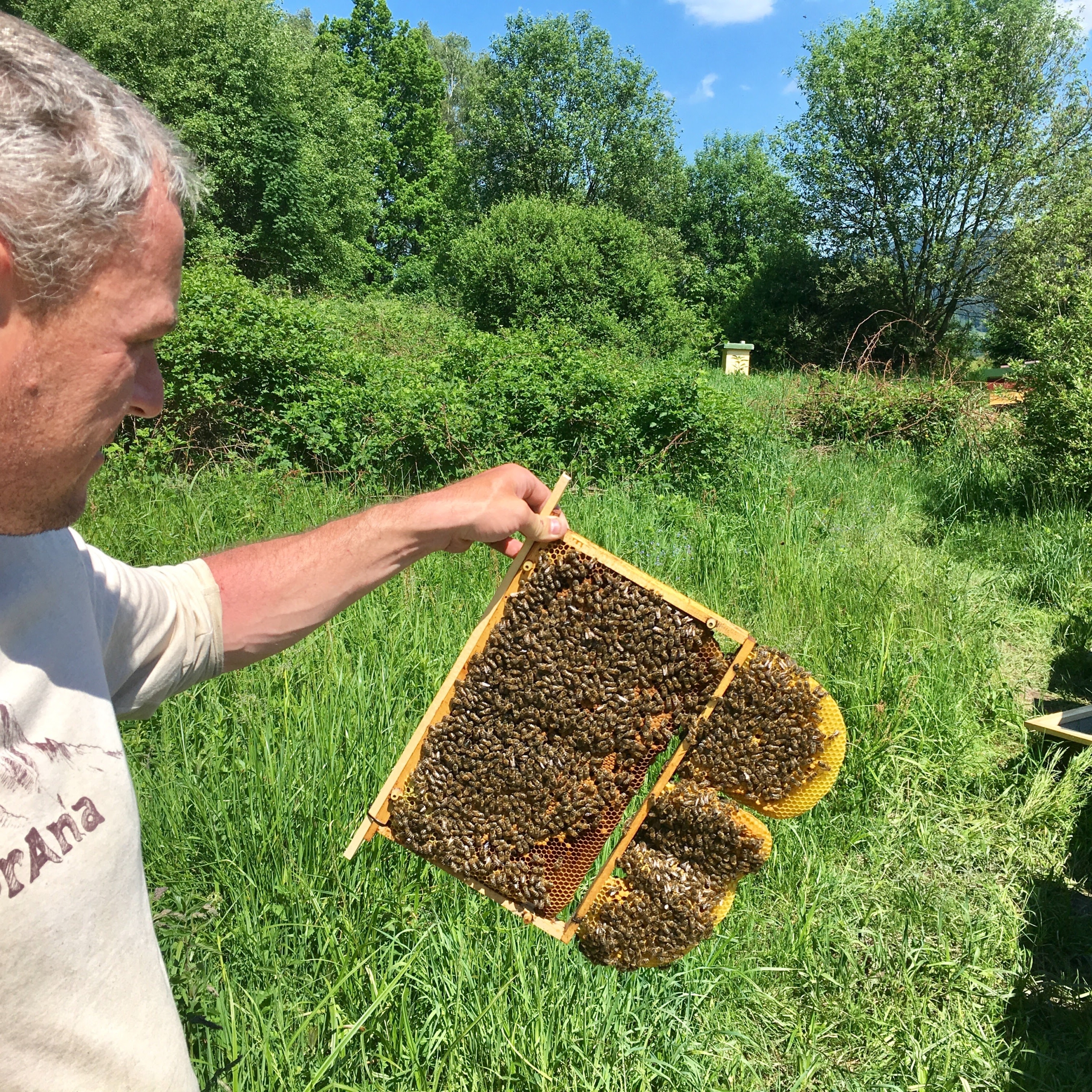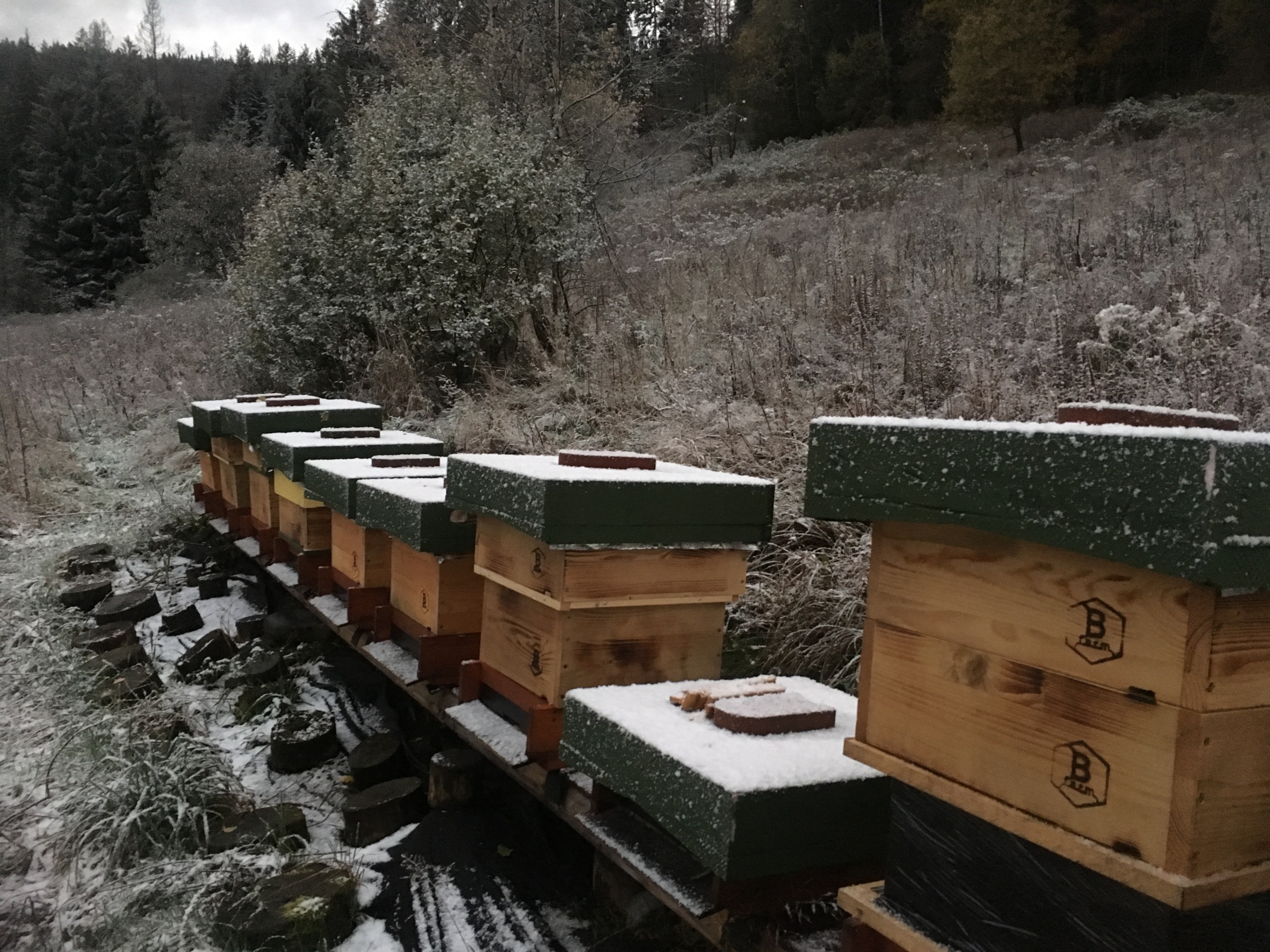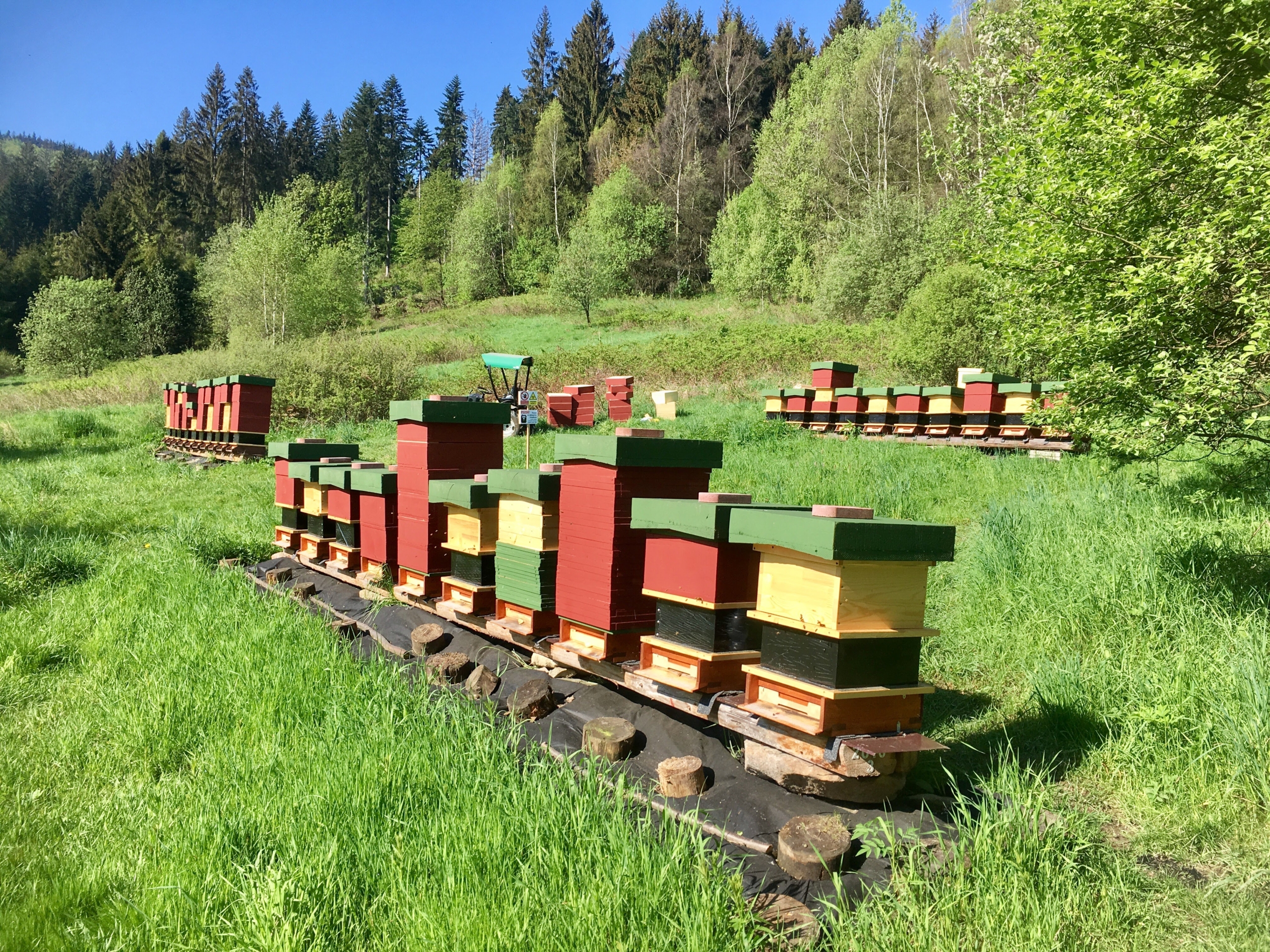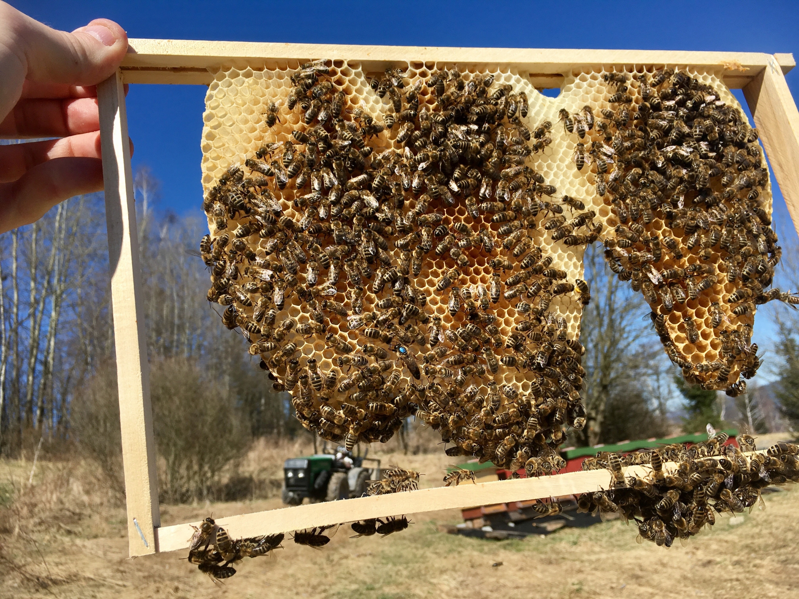 5 rámkové, hustě obsednuté včelami, se značenou mladou výběrovou matkou.