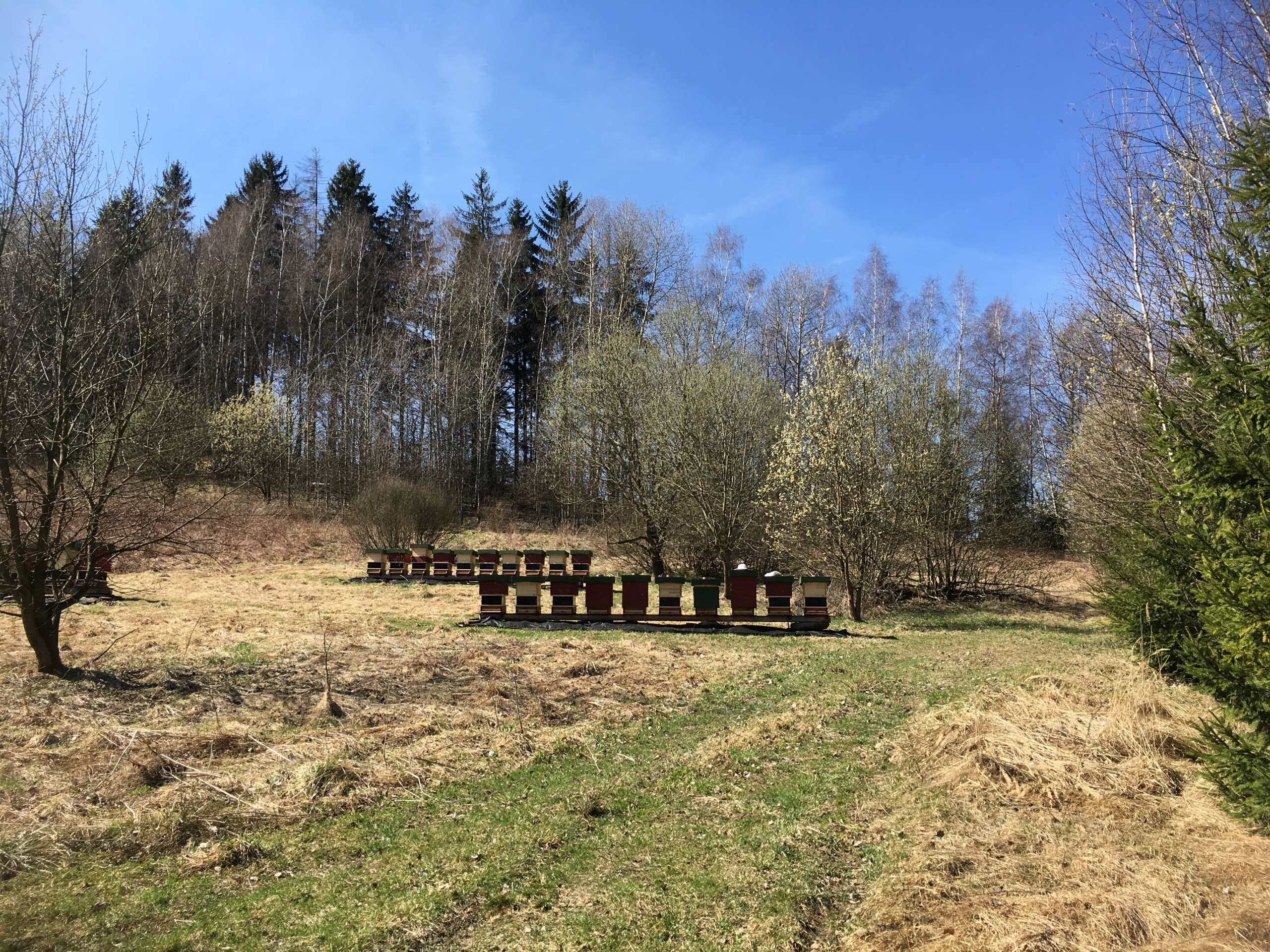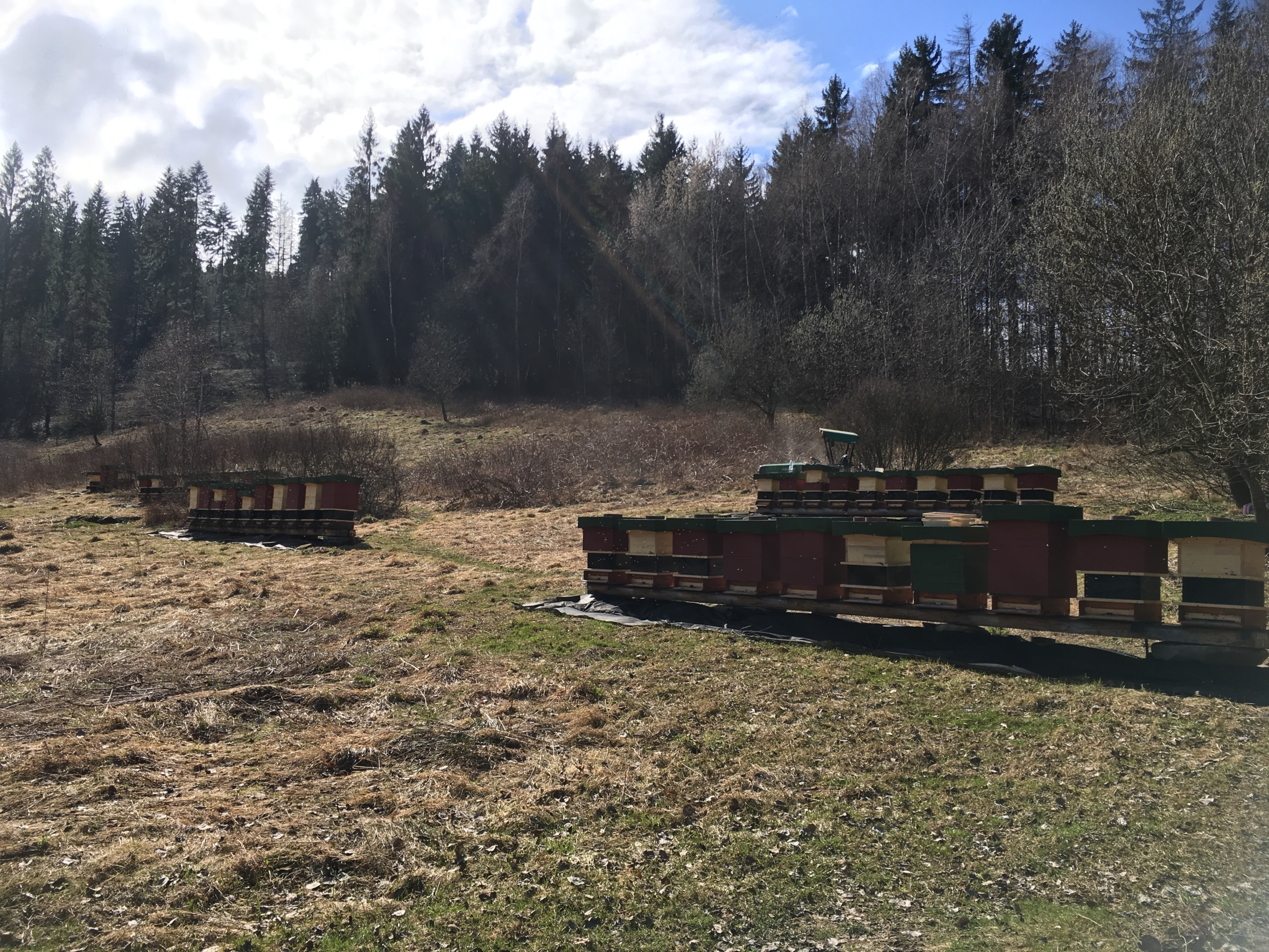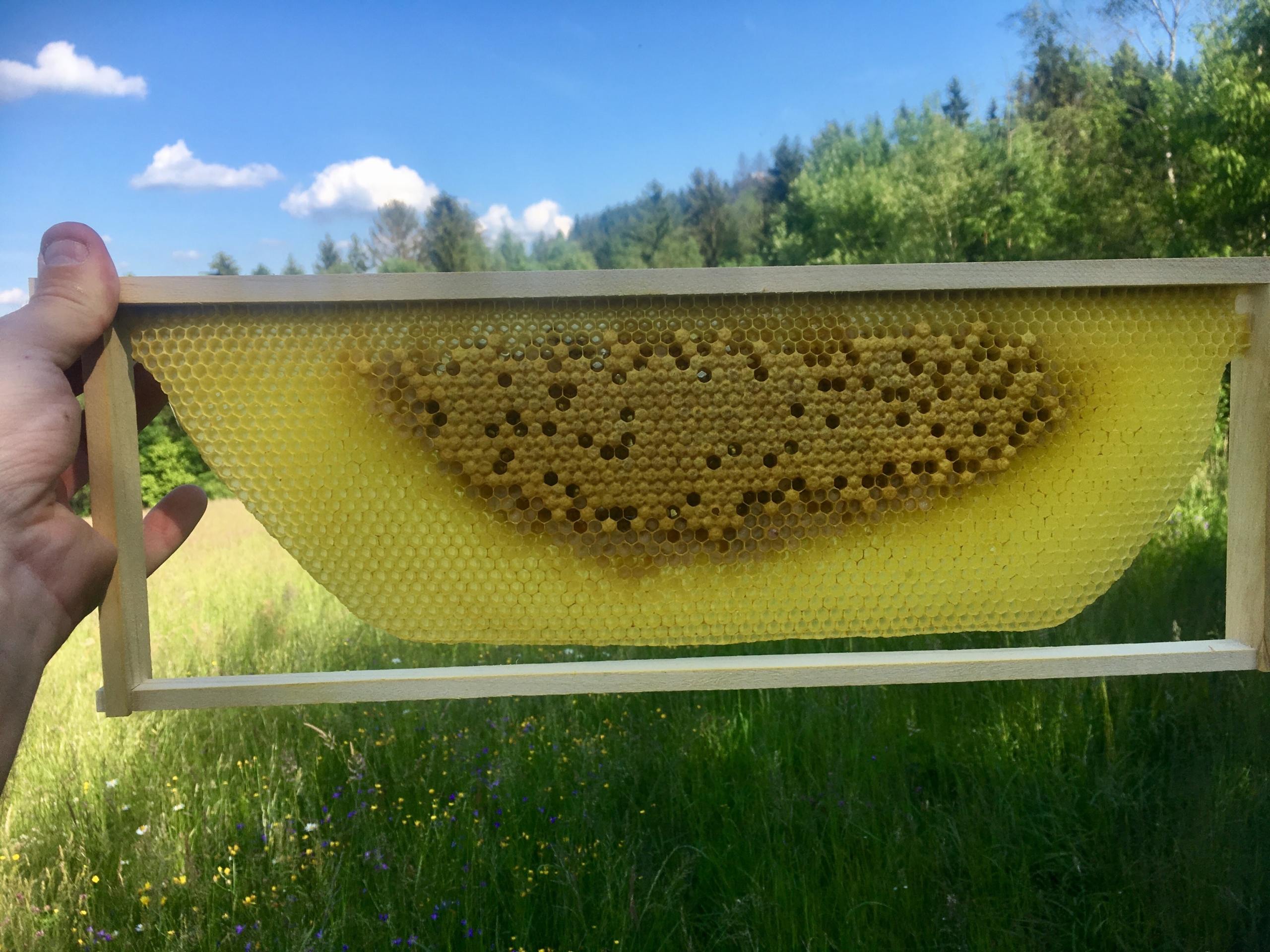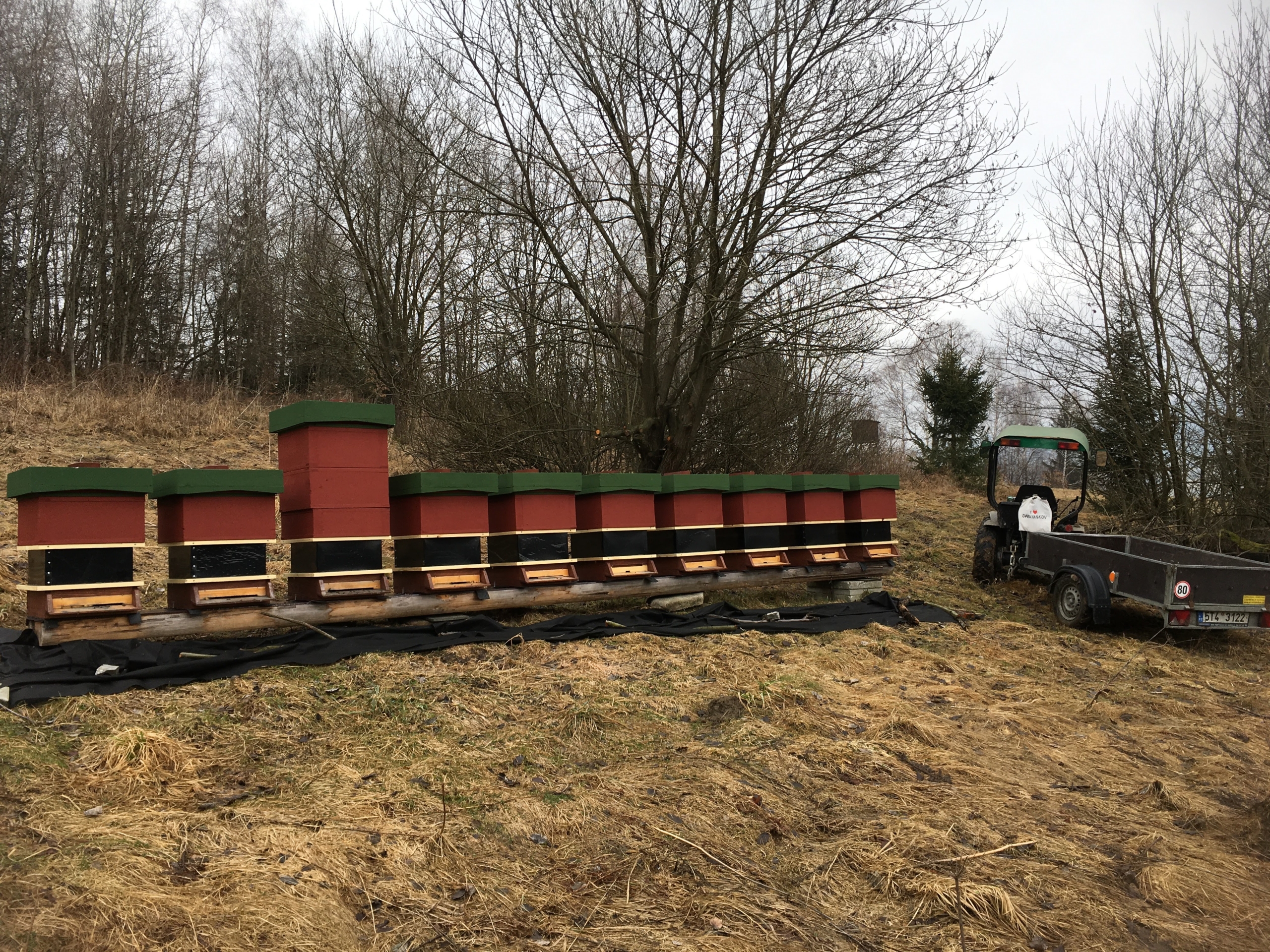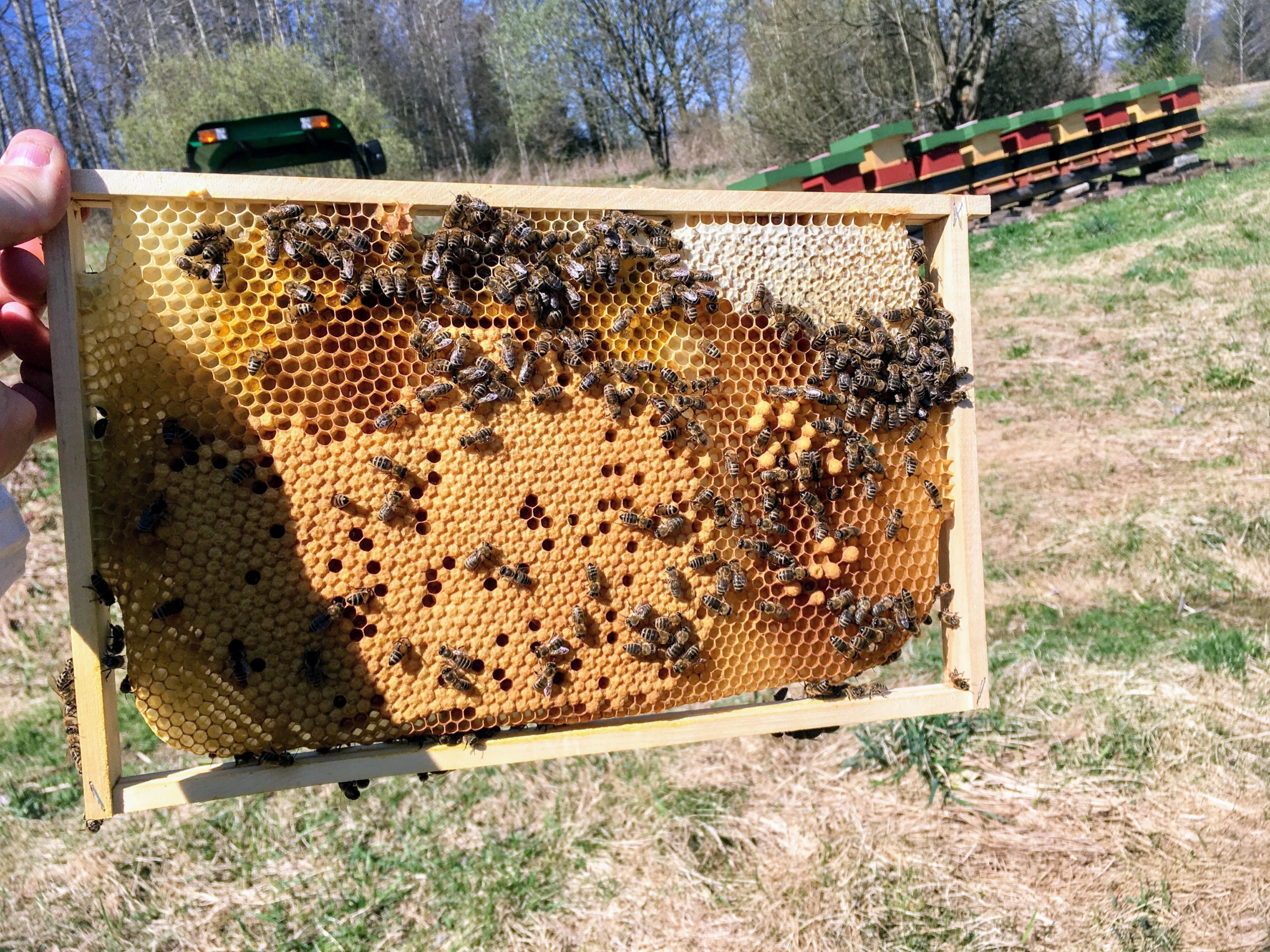 5 rámkové, hustě obsednuté včelami, se značenou mladou výběrovou matkou.